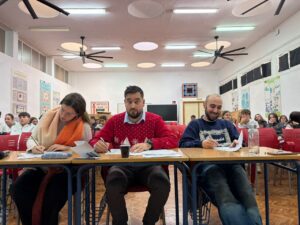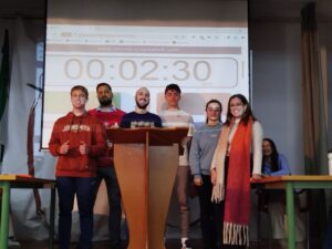 El equipo de 4 ESO formado por Rubén López, Rubén Aceituno, Manuel Barrientos y Jorge Hidalgo se impuso de forma muy ajustada en la final del torneo de debate navideño al grupo del mismo nivel compuesto por Lucía Arjona, Paula Nieto, Marta Castillo y Nuria Hinojosa El concurso, organizado por el Departamento de Geografía e Historia, versó sobre la cuestión «¿Va la Inteligencia Artificial a contribuir a lograr un mundo más justo y democrático?».