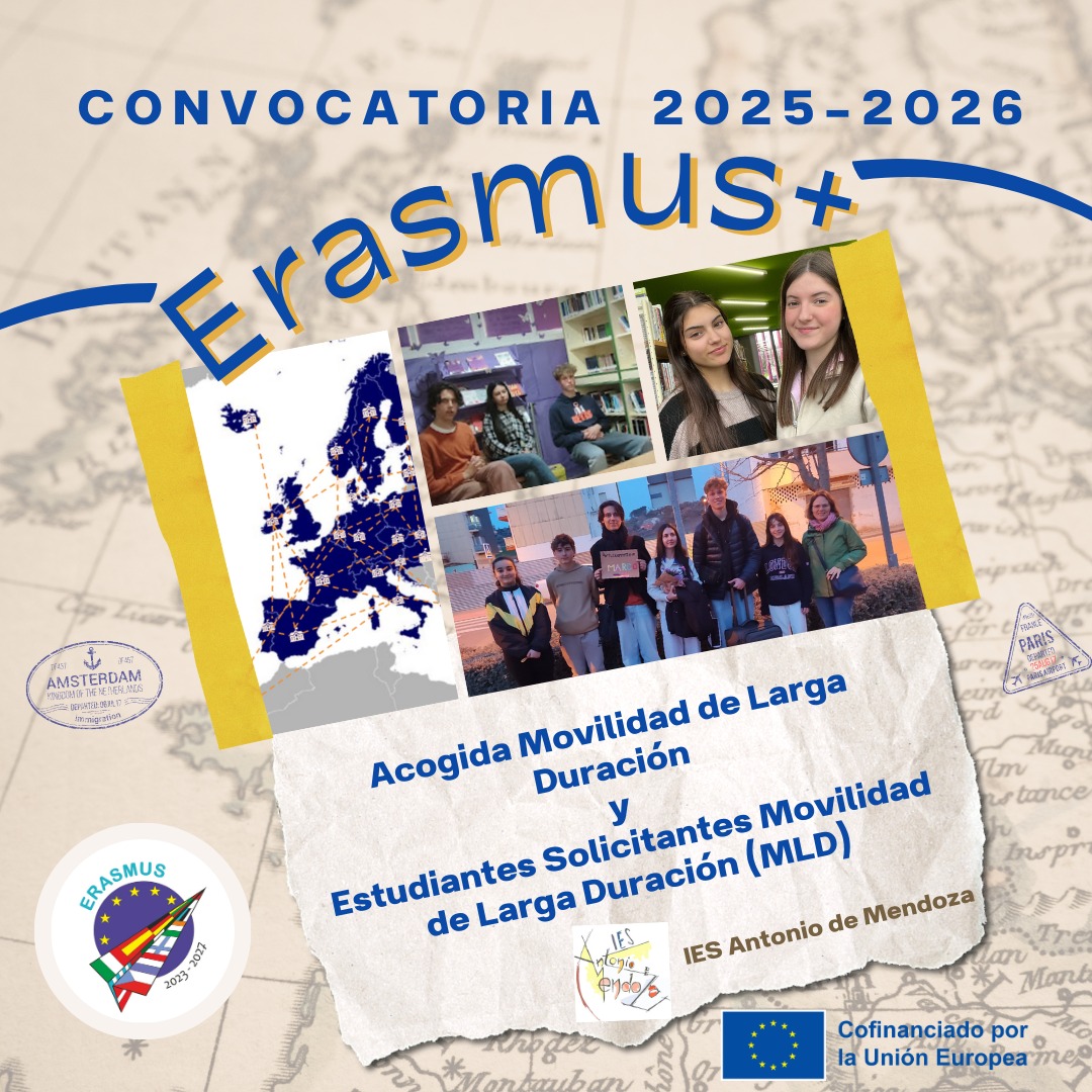 El IES Antonio de Mendoza abre el proceso de selección para familias anfitrionas y estudiantes solicitantes de movilidades de larga duración (MLD) dentro del Programa Erasmus+ (Acción Clave 1 KA121) para el curso académico 2025-2026.