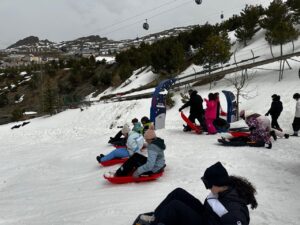 Sierra Nevada no te deja indiferente. Del 2 al 4 de marzo, un grupo de 60 estudiantes del IES ANTONIO DE MENDOZA de 2o y 3o ESO, estuvo inmerso en un viaje repleto de desafíos, desde juegos en la nieve, un trineo corto pero muy intenso que le quita el hipo a cualquiera, caídas y caídas para aprender a esquiar, frío, nieve, niebla, transporte de mucho material pesado, usar unas botas tan rígidas que parece que tenemos que aprender a andar de nuevo… hasta el desafío de autocontrolarse en las compras en el Nevada shopping.
