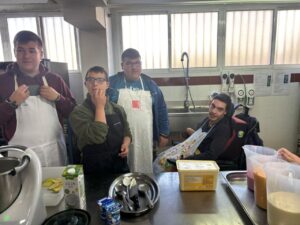 El alumnado del aula específica y de agrojardinería compartió un enriquecedor taller junto a los estudiantes de la básica de cocina y restauración. Durante la actividad elaboramos deliciosas hamburguesas, pizzas, galletas de avena con chocolate y refrescantes smoothies de frutas 🍔🍕🍪🥤
