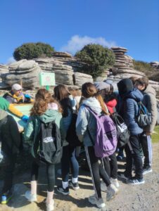 El Departamento de Historia organizó una salida a Antequera con el alumnado de 1.º de ESO. Durante la mañana disfrutamos de una visita al Torcal, un impresionante paraje natural conocido por sus singulares formaciones kársticas, donde los estudiantes pudieron conocer de cerca cómo la erosión ha modelado el paisaje durante millones de años.