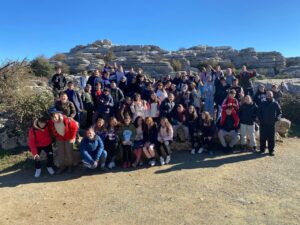 El Departamento de Historia organizó una salida a Antequera con el alumnado de 1.º de ESO. Durante la mañana disfrutamos de una visita al Torcal, un impresionante paraje natural conocido por sus singulares formaciones kársticas, donde los estudiantes pudieron conocer de cerca cómo la erosión ha modelado el paisaje durante millones de años.